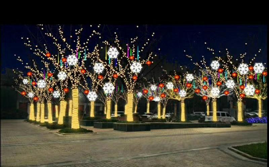 道路亮化:主要是道路两旁的树木亮化,可以使用中国结、红灯笼等装饰挂灯,搭配串灯打造春节主题的树木亮化,让在路上奔波的人们感受到浓郁的节日氛围,感受传统文化魅力。